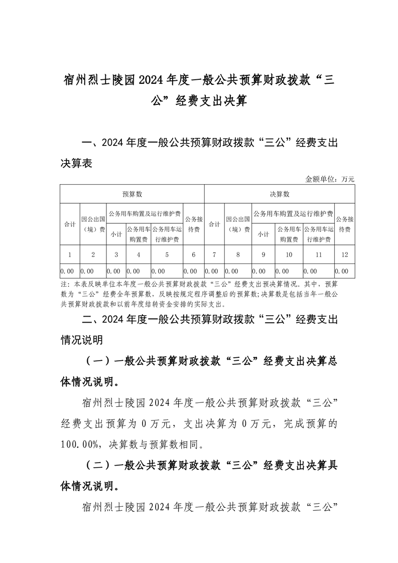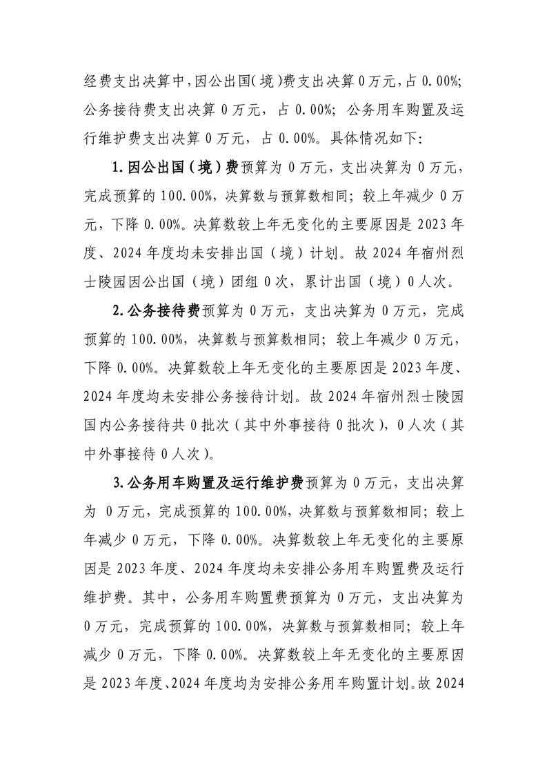 宿州烈士陵园2024年度一般公共预算财政拨款“三公”经费支出决算 |