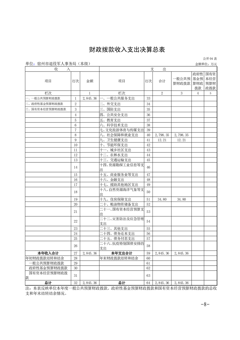 宿州市退役军人事务局(本级)2024年度单位决算 |