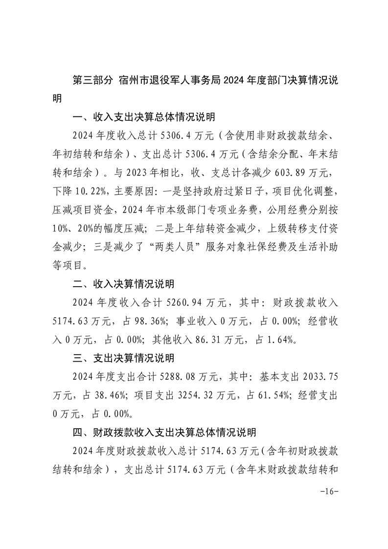 宿州市退役军人事务局2024年度部门决算 |