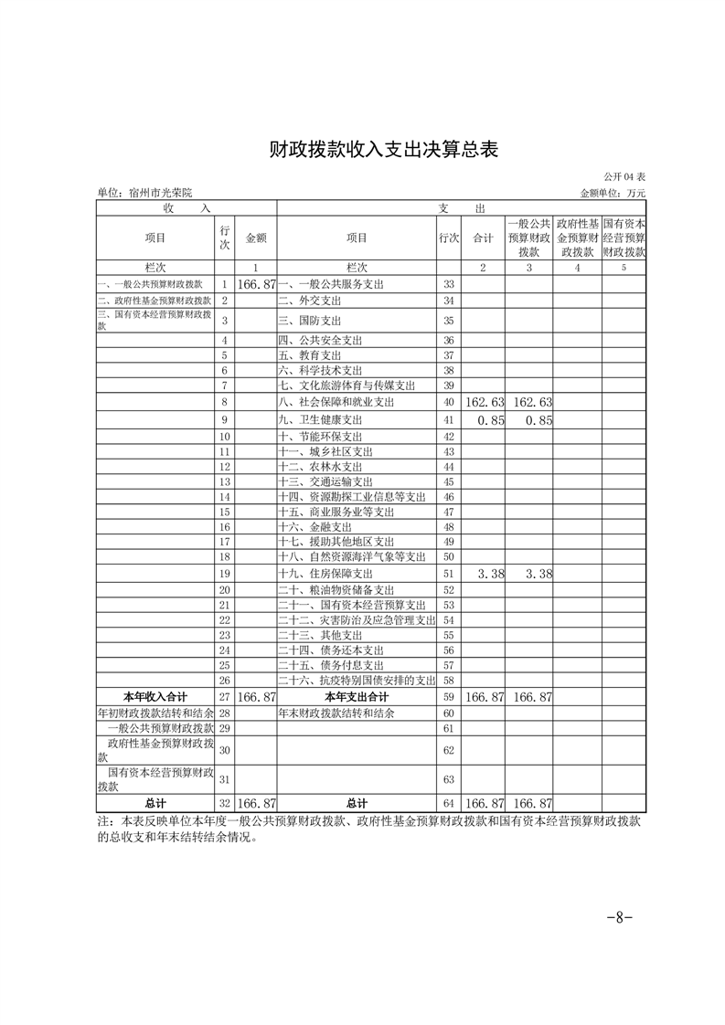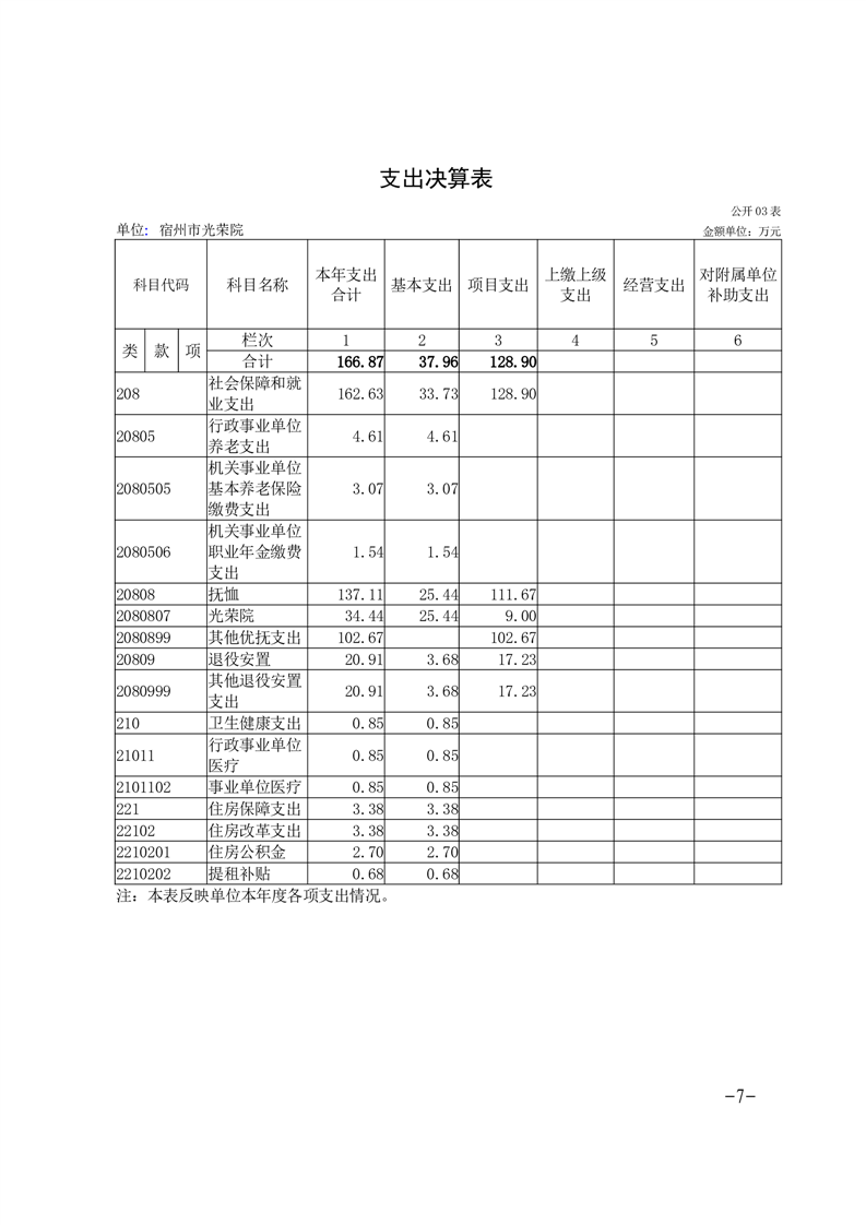 宿州市光荣院2024年度单位决算 |