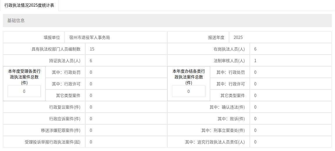 【行政执法统计年报】市退役军人事务局2025年行政执法统计年报 |