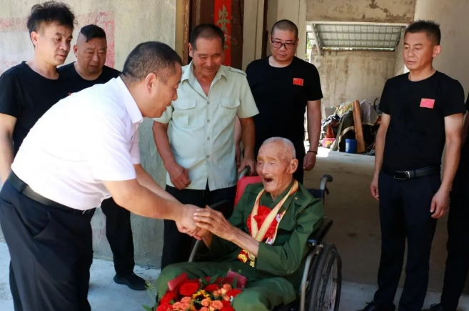 8月21日,在埇桥区汴河街道梅庵村,埇桥区退役军人事务局负责人怀着崇敬之情,为98岁高龄的抗战老兵王运岭庄重地佩戴上“中国人民抗日战争胜利 80 周年”纪念章。这枚由中共中央、国务院、中央军委联合颁发的纪念章,意义非凡,它不仅是对王运岭老人光辉革命生涯的高度认可,更是他所获的又一崇高荣誉。
