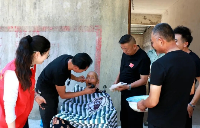 当天,汴河街道退役军人红耀江淮志愿服务队的7名队员,早早便来到王运岭老人家中,主动开展各类志愿服务活动,他们帮忙打扫房间卫生,细心地为老人修剪指甲、打理头发。