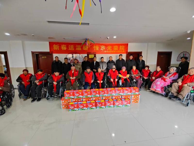 1月16日上午,爱心企业代表走进市光荣院,看望慰问退役老兵及其亲属,为他们送去关怀和温暖。活动现场,慰问团为老人送上围巾、水果、奶粉等慰问品,并与他们亲切交谈,忆峥嵘岁月,话幸福家常。紧接着,激昂熟悉的旋律响起,《打靶归来》《中国人民志愿军战歌》等经典军歌的合唱将活动推向高潮。老人神情庄重,轻声跟唱,情不自禁地挥舞双手打着节拍。在随后的互动交流环节,企业代表也分享了参与活动的感悟,表达对革命前辈的崇高敬意,感谢他们为党和国家作出的贡献,并提前送上新春祝福。