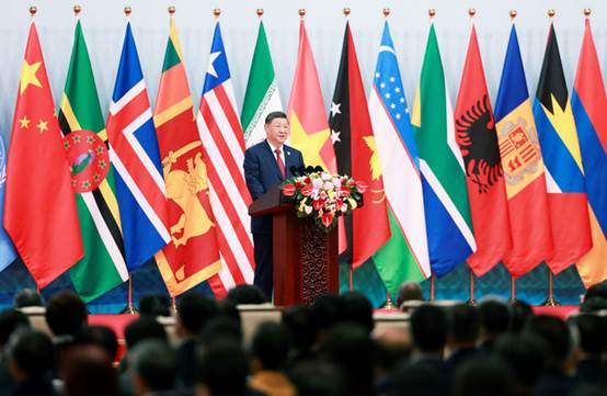金秋时节,天朗气清。国家会议中心会场内,各国国旗和联合国旗帜组成恢弘旗阵。
