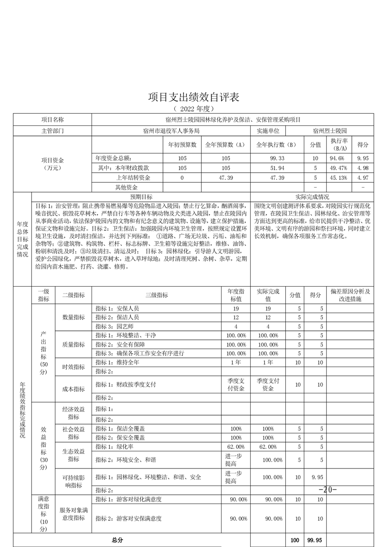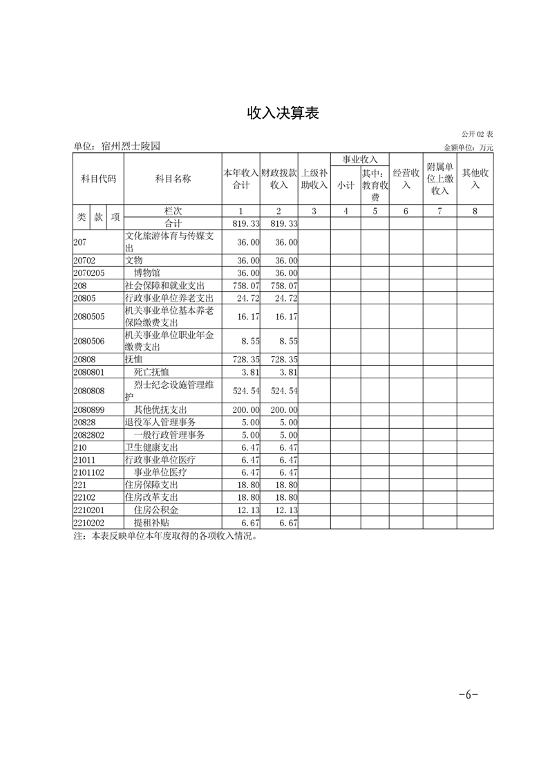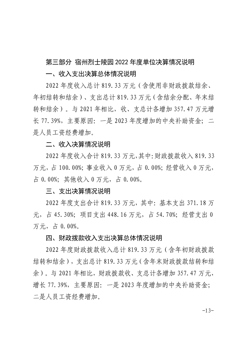 宿州烈士陵园单位2022年度决算