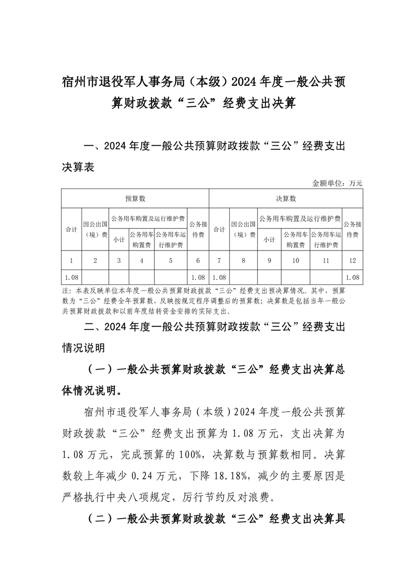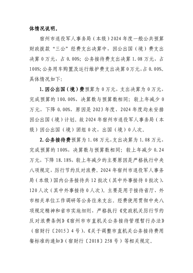宿州市退役军人事务局(本级)2024年度一般公共预算财政拨款“三公”经费支出决算