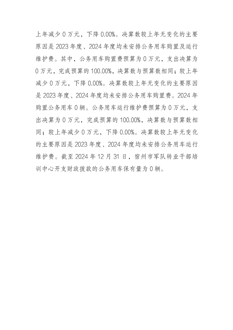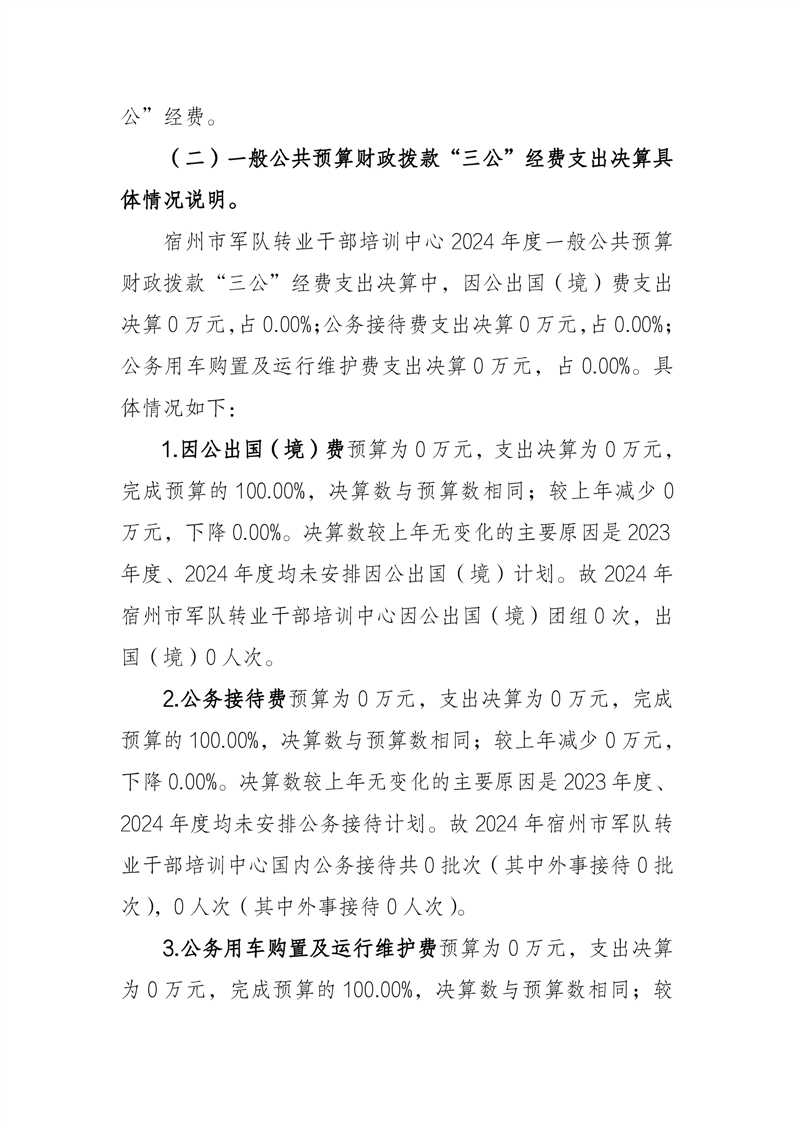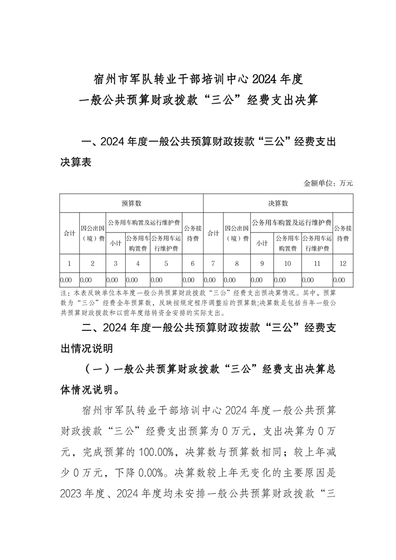宿州市军队转业干部培训中心2024年度一般公共预算财政拨款“三公”经费支出决算
