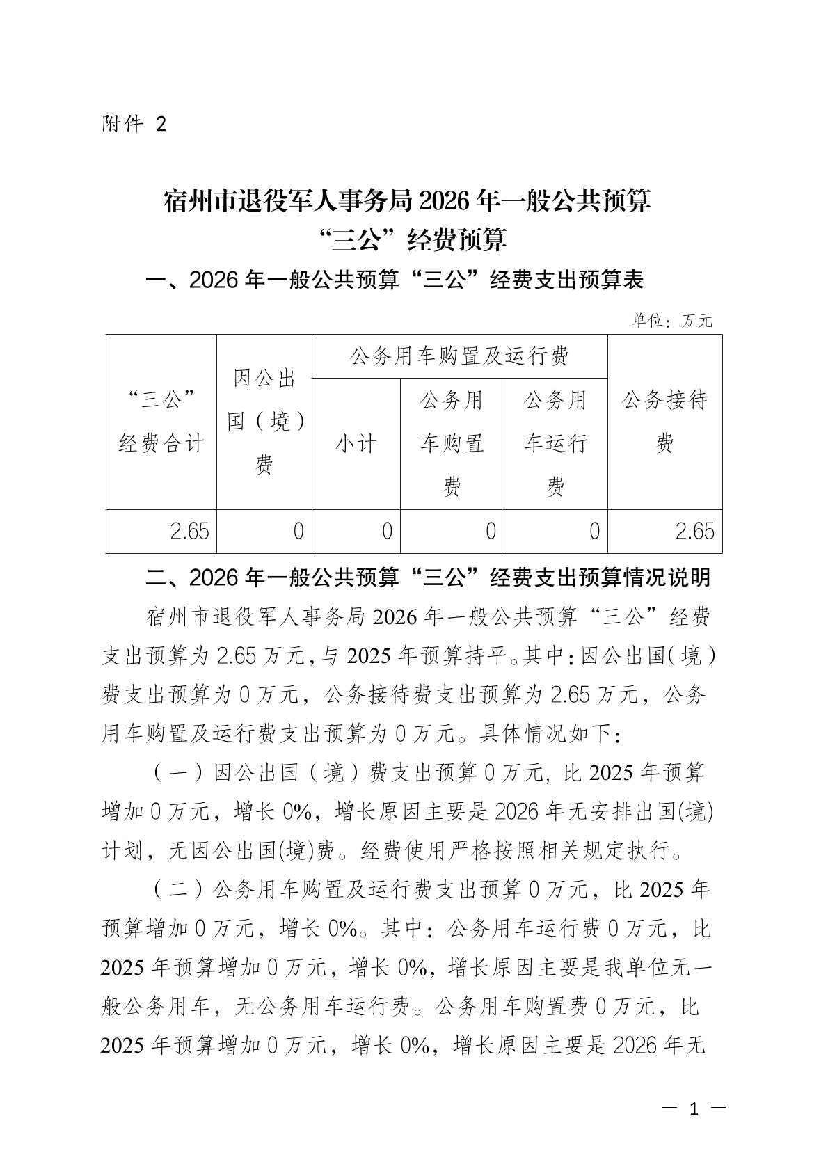 宿州市退役军人事务局2026年一般公共预算“三公”经费预算