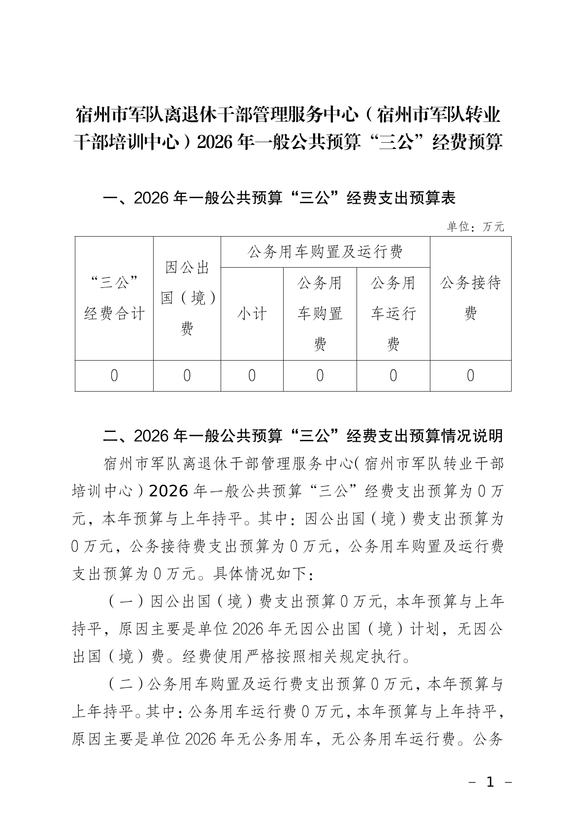 宿州市军队离退休干部管理服务中心(宿州市军队转业干部培训中心)2026年一般公共预算“三公”经费预算