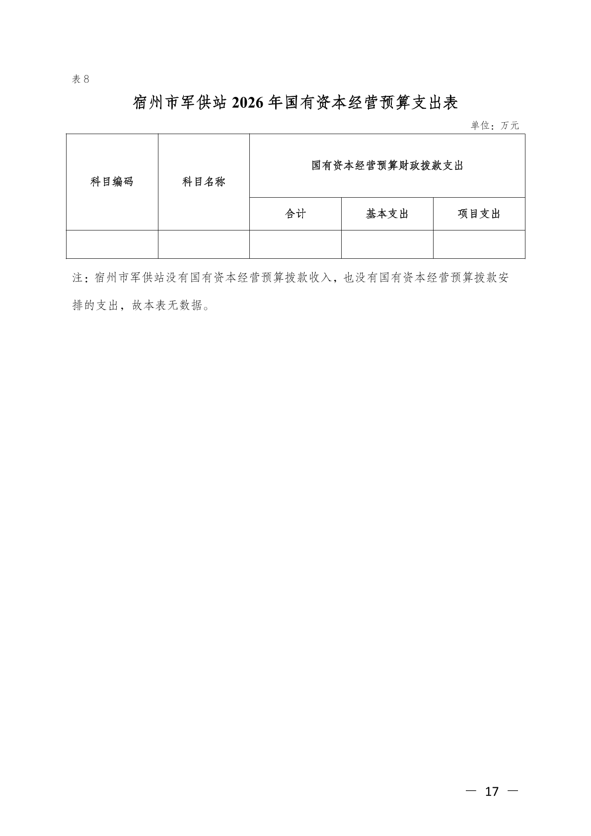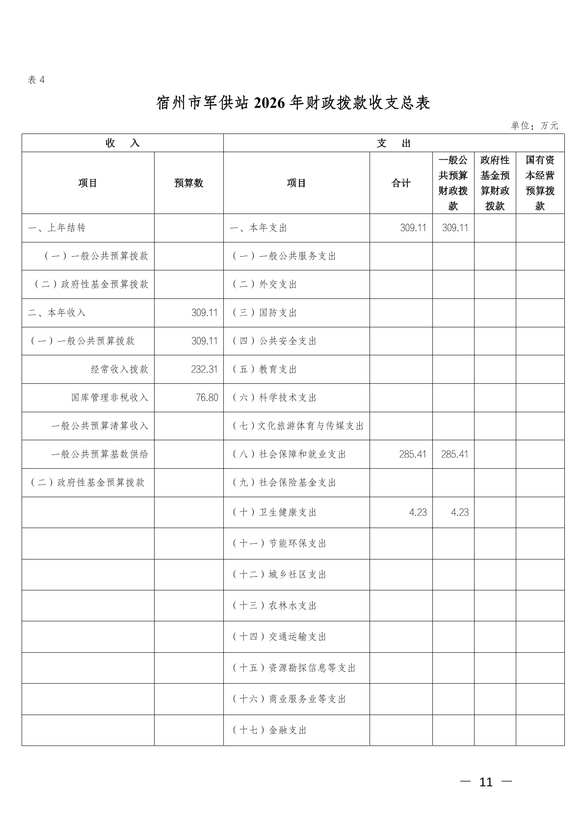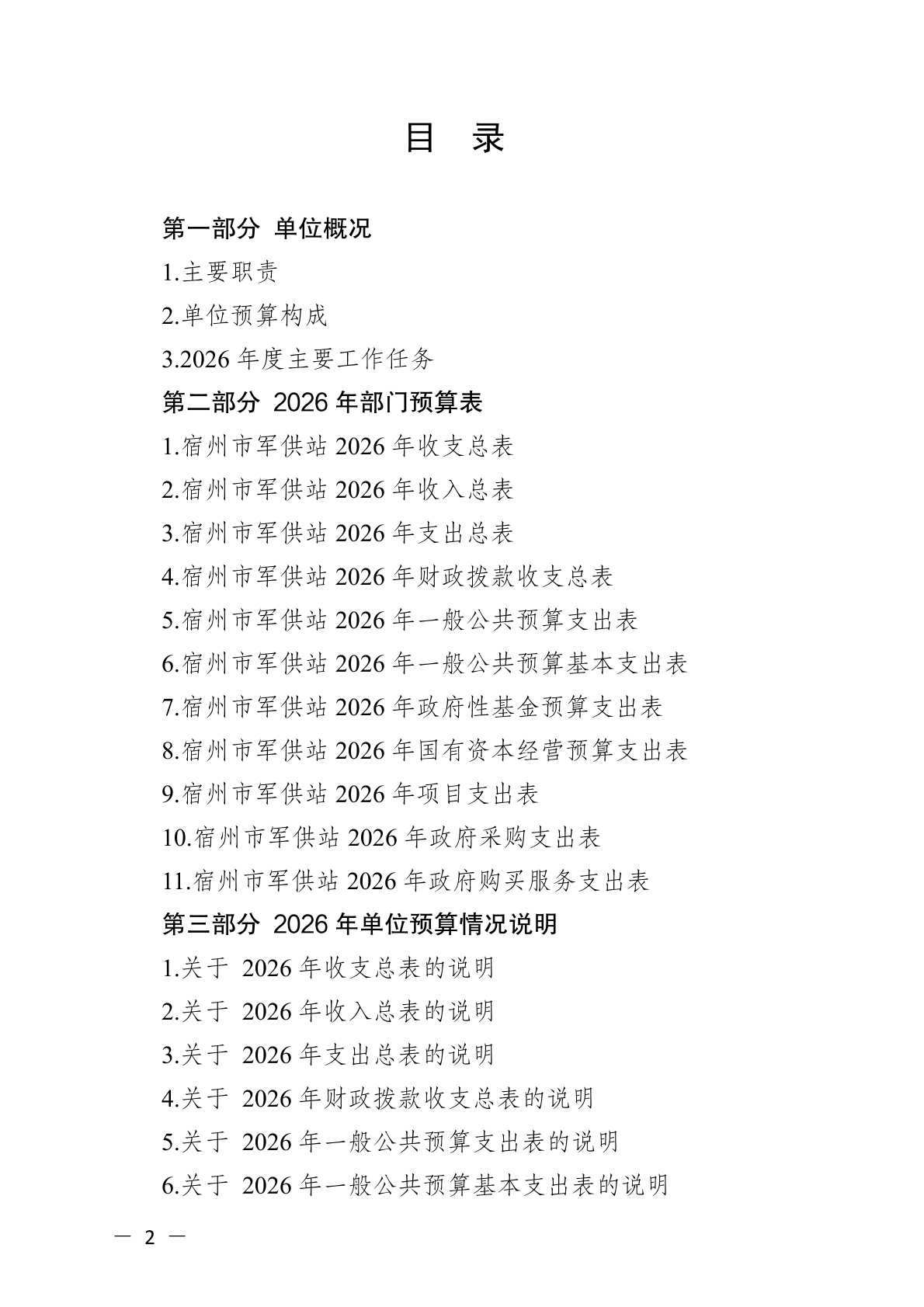 宿州市军供站2026年单位预算