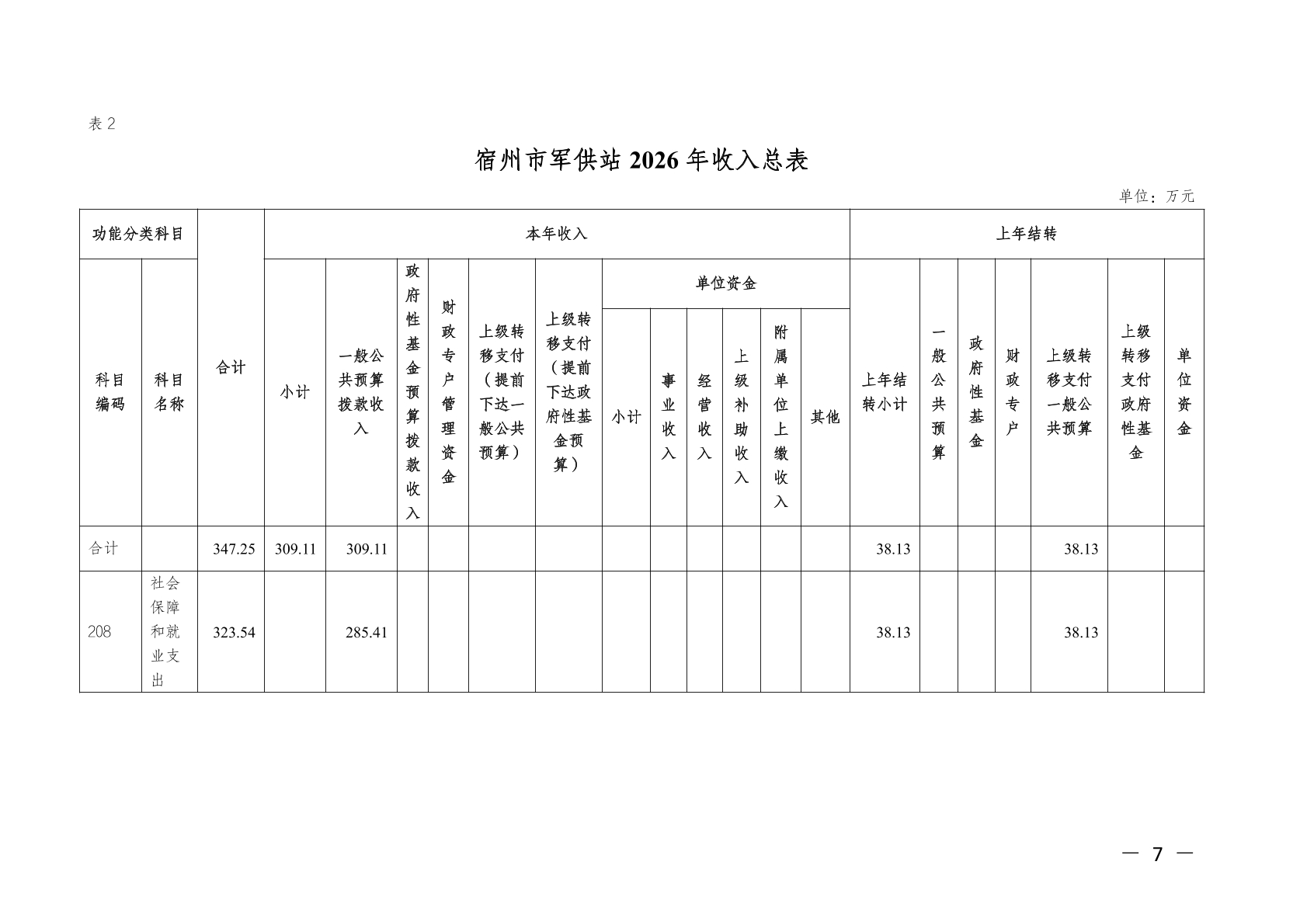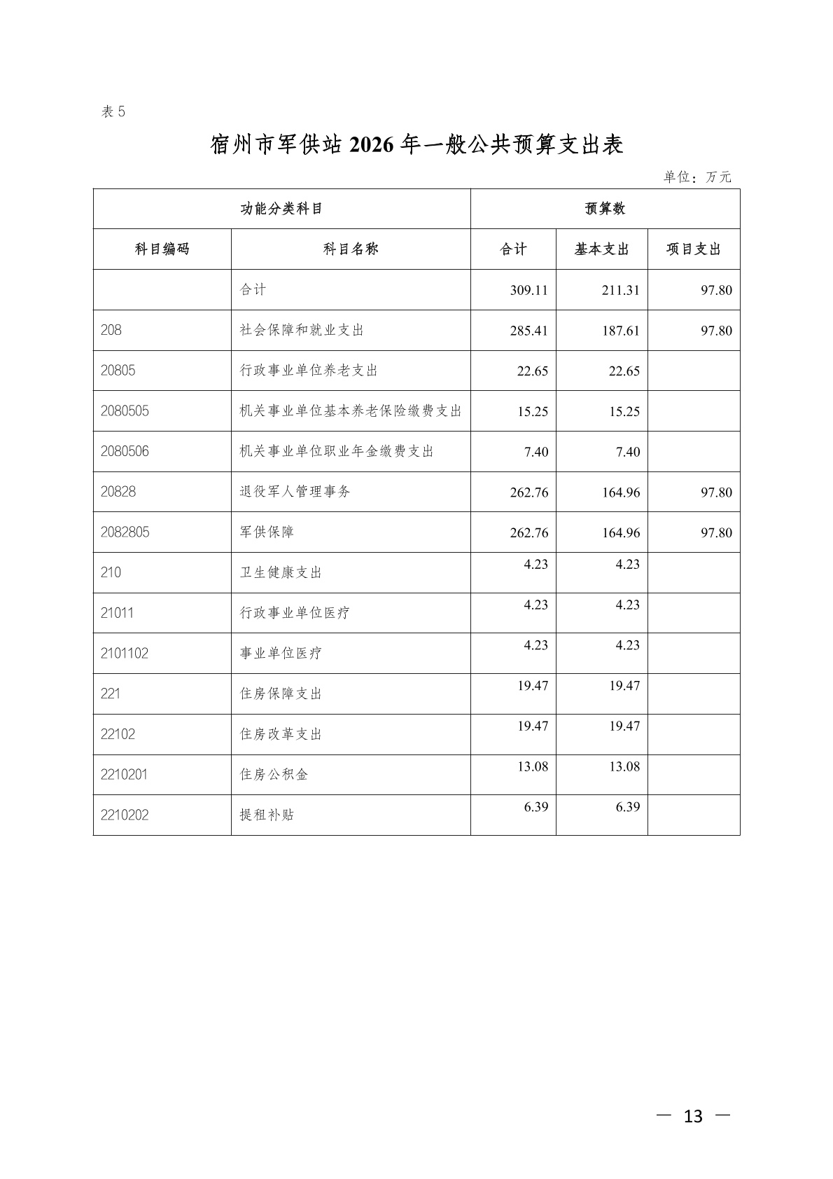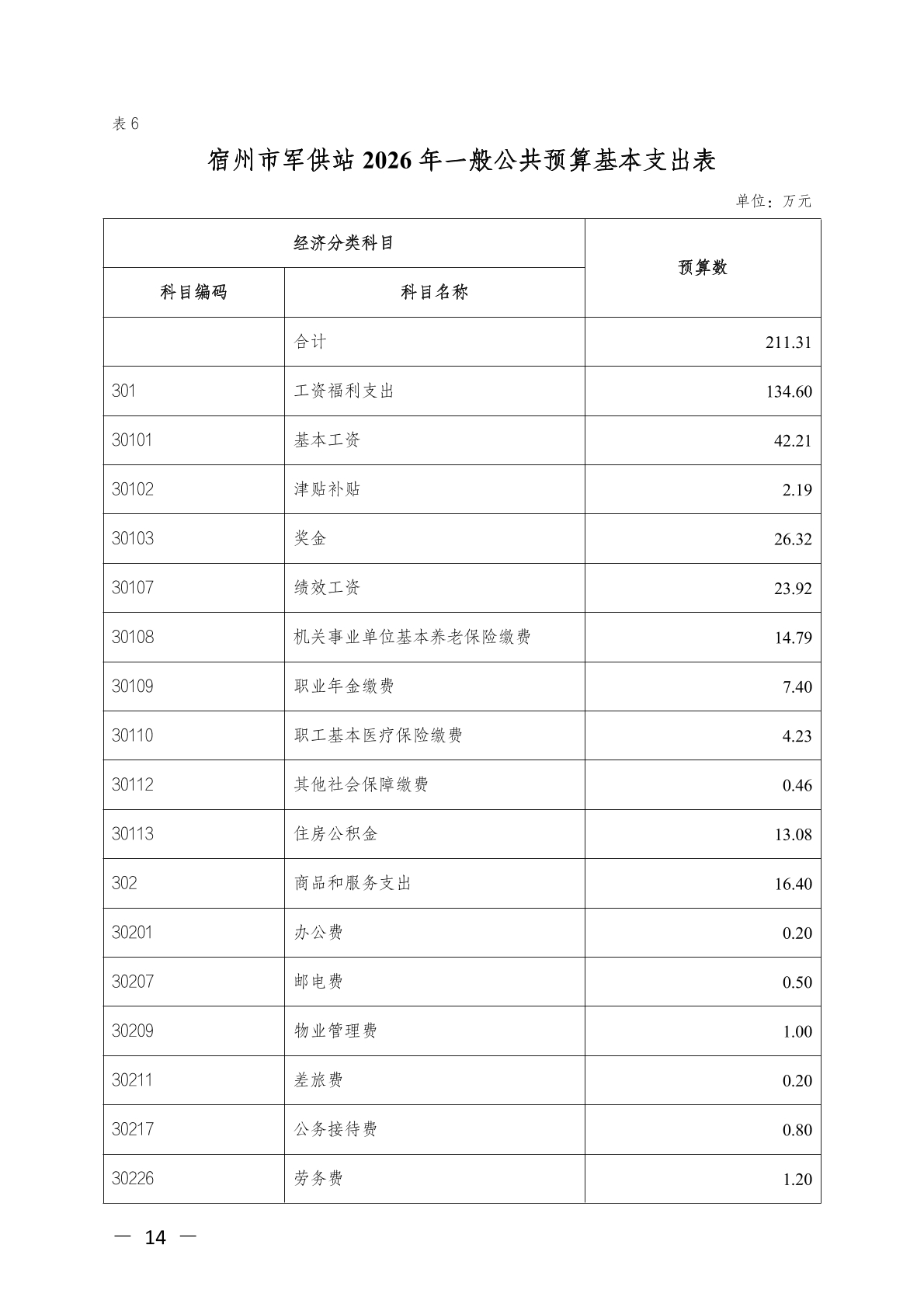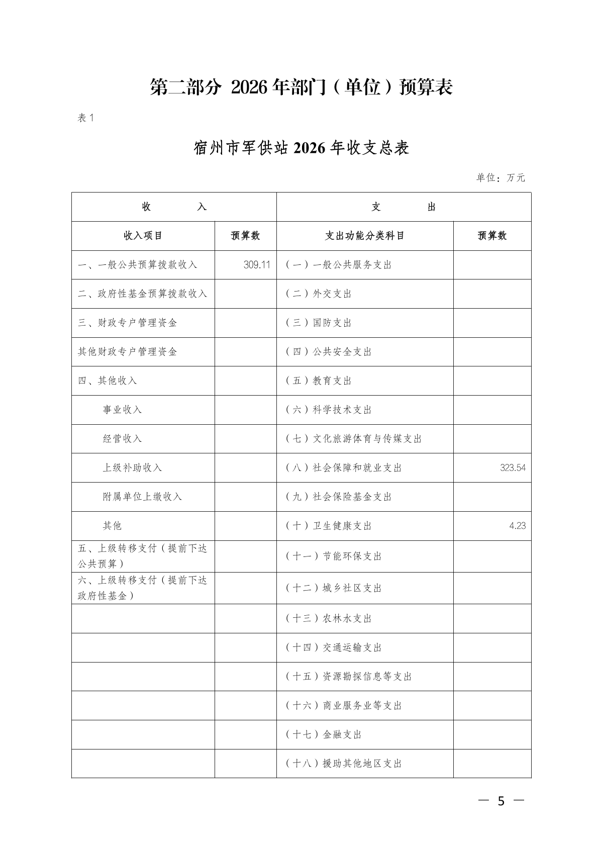 宿州市军供站2026年单位预算