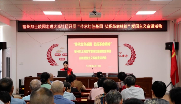 为深入学习贯彻党的二十大精神,扎实推进爱国主义教育,6月12日,宿州烈士陵园宣讲团走进东关街道大泽社区,开展“传承红色基因,弘扬革命精神”主题宣讲活动。
