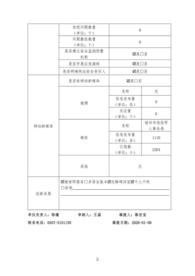 宿州市退役军人事务局2025年度政府网站工作报表